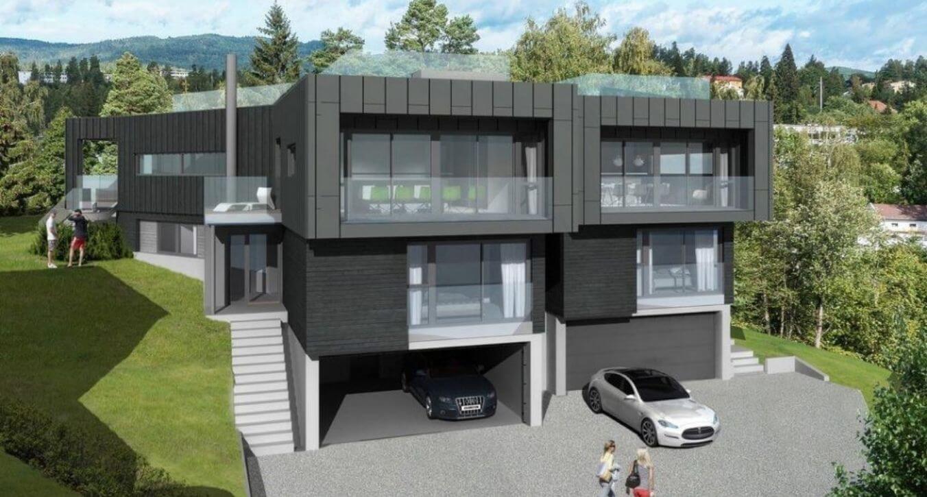 Bygget etter TEK17 som passivhus. Her har vi en varmepumpe i hver del hvor vi borret etter energi, vannbåren gulvvarme i alle rom, stor takterrasse med utekjøkken og jacuzzi, vannbåren snøsmelt utenfor garasjene og sprinkleranlegg.